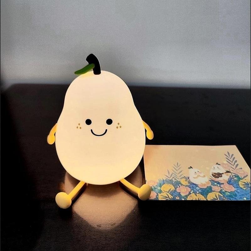 【Soothing Pear Shaped Night Light】 The night light provides a gentle andcalming glow for children of all ages to drive away the darkness andaccompany children at bedtime, allowing parents to enjoy a peaceful night’ssleep as well. No more worrying about struggling at bedtime.