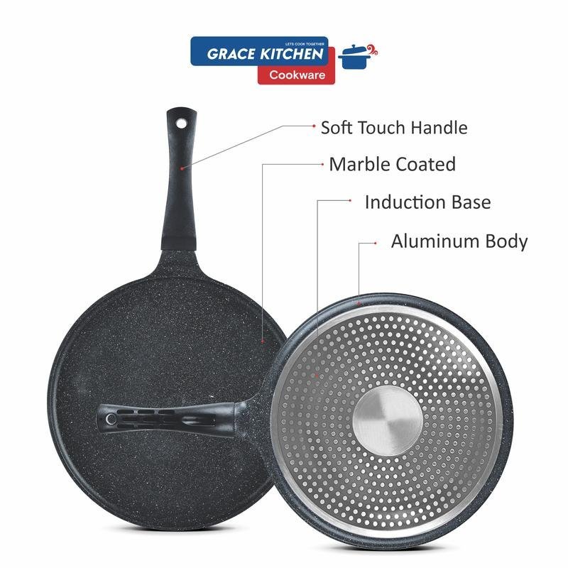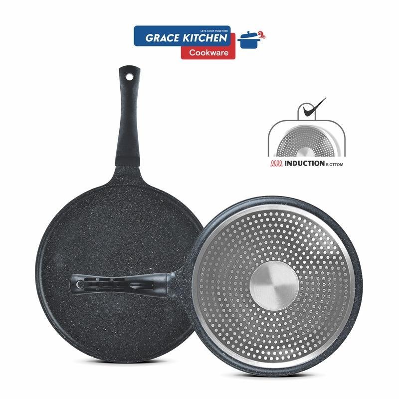 Experience effortless cooking with the GRACE Non StickCrepe Pan, perfect for making crepes, dosas, andpancakes. Crafted from durable die-cast aluminium, thisskillet ensures even heat distribution for perfectly cookedmeals.