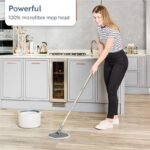 Met de pompbedieningshendel kunt u moeiteloos uw dweil spoelen en uitwringen. Eén druk op de hendel activeert de draaiende mand, waardoor de dweilkoppen in seconden perfect vochtig zijn – geen geknoei met uw handen of vooroverbuigen nodig!