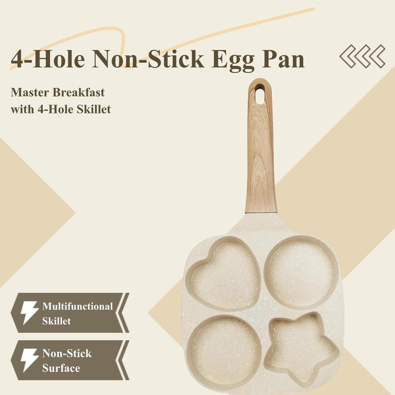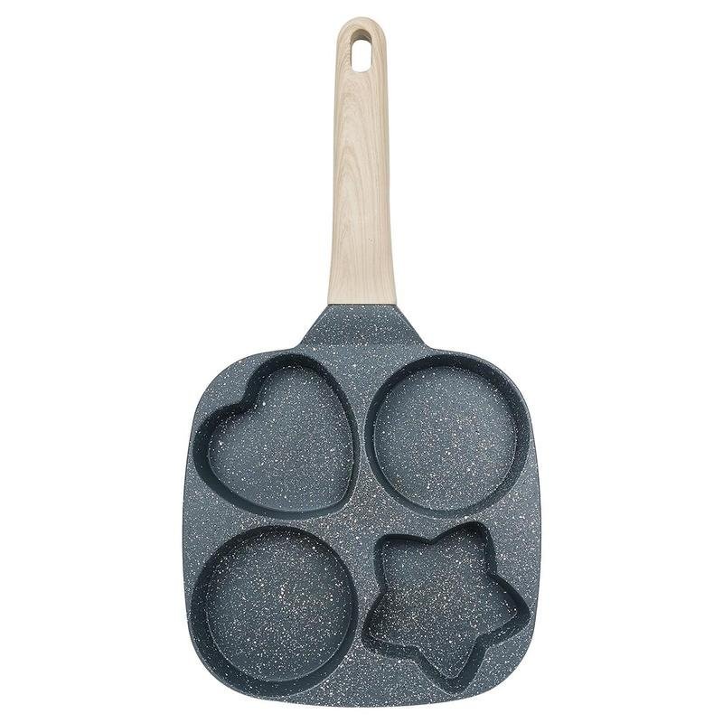 Anti-aanbak Stervormig Eierpan – 4-voudig Pannenset met Handvat, Keukengerei voor Ontbijt, Eieren, Toast & Brood